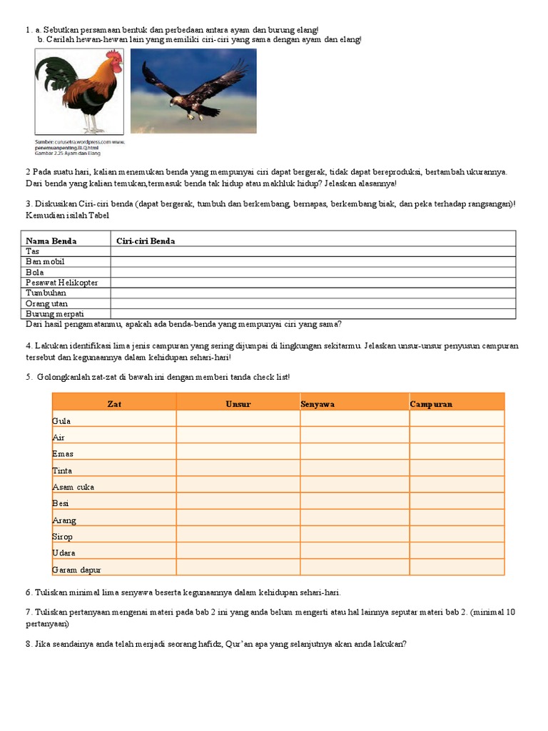 Lembar Kegiatan Siswa Lembar Kegiatan Siswa Ciri Ciri Makluk Hidup