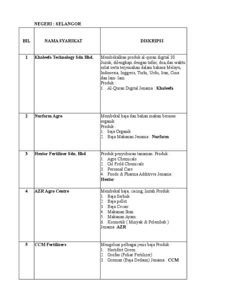 Senarai Syarikat Di Selangor Pdf
