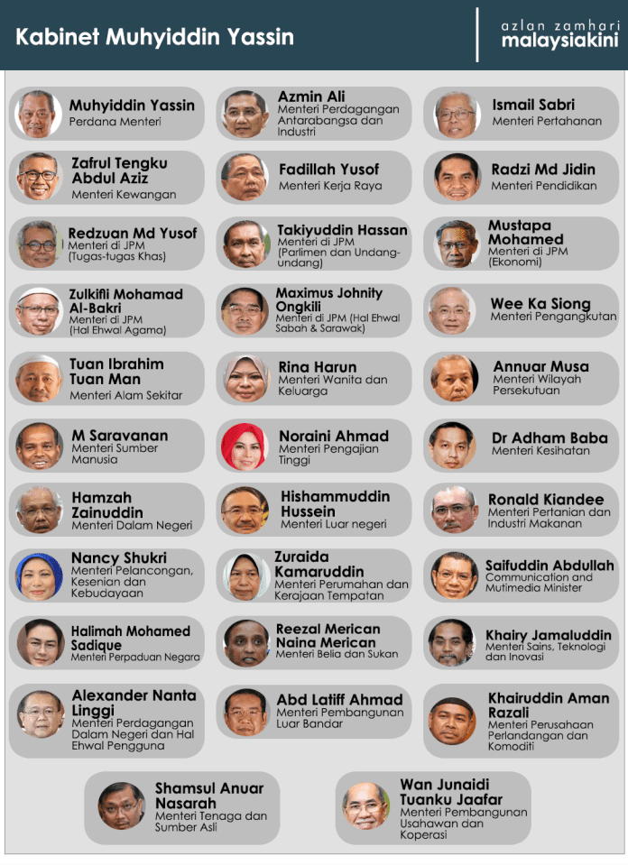 Fakta Senarai Menteri Kabinet Perikatan Nasional Muhyiddin Yassin Sentiasapanas