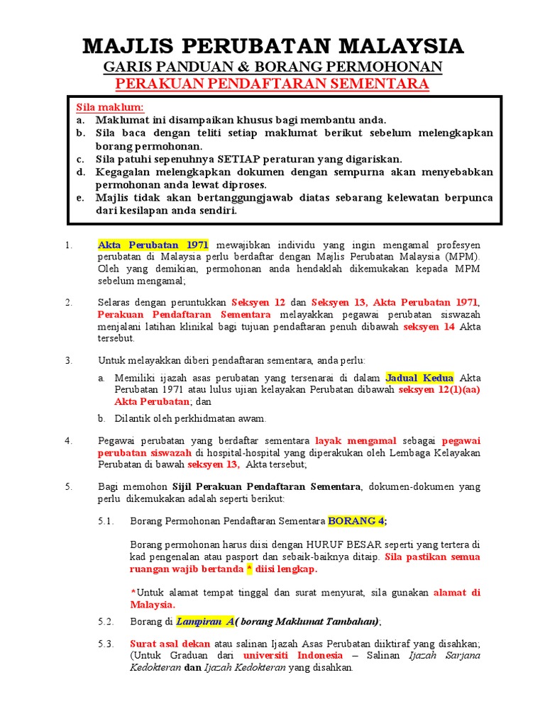 Majlis Perubatan Malaysia Perakuan Pendaftaran Sementara
