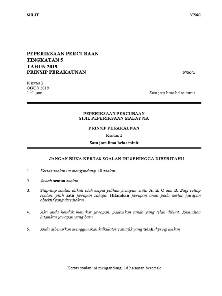 Accounts Version 1 Docx 1 Terhad 3756 3 Lembaga Peperiksaan Kementerian Pendidikan Malaysia Sijil Pelajaran Malaysia 2019 Prinsip Perakaunan Projek Course Hero