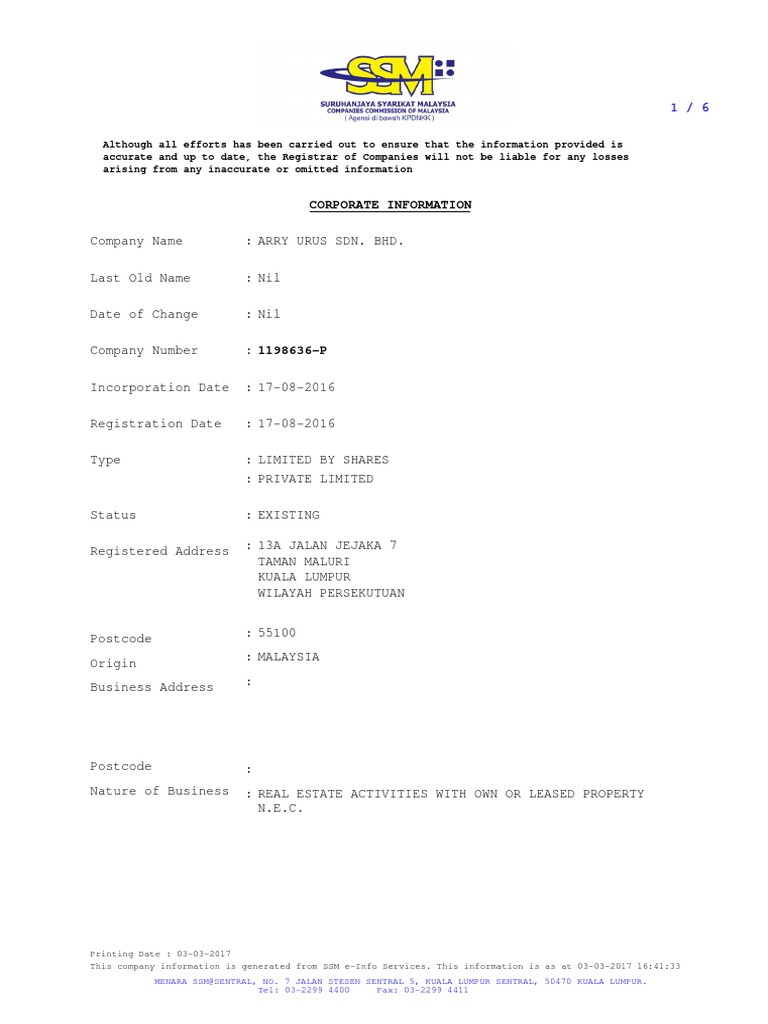 Ssm E Info In Need Of A Company S Certificate Of Incorporation For Submission Or Verification Purpose Get It On Www Ssm Einfo My Facebook
