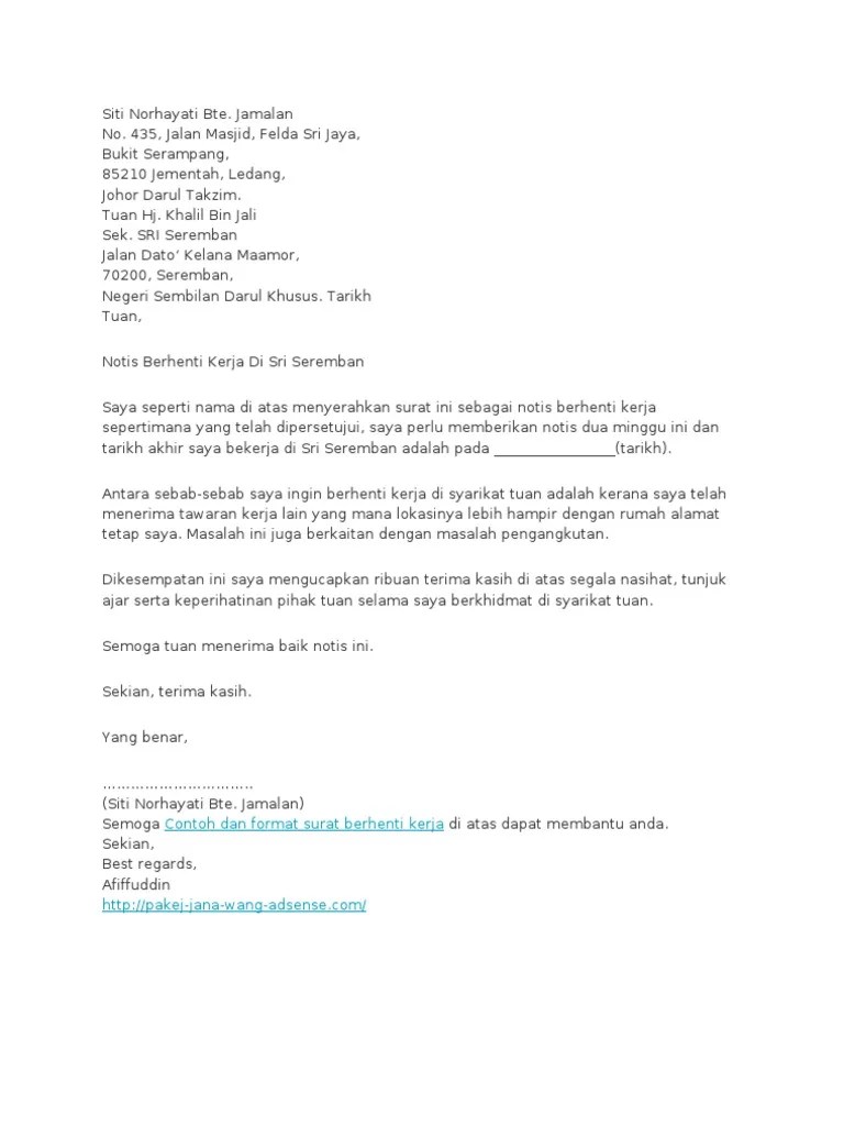 Contoh Surat Berhenti Kerja Terbaik Notis Berhenti Kerja