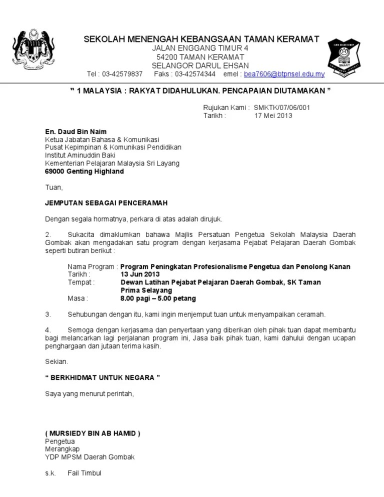 Sempena mesyuarat agung pibg yang akan diadakan pada hujung bulan ni cn sukacita berkongsi dengan anda contoh surat jemputan sebagai perasmi untuk mesyuarat agung tersebut. Jump to page. Ia dikarang untuk pelbagai tujuan seperti memohon.