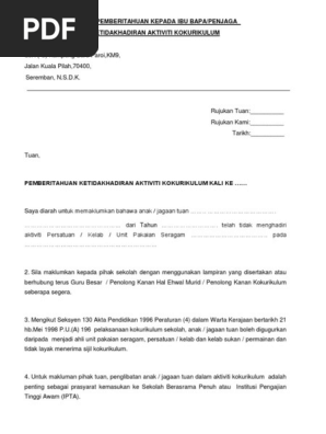Contoh Karangan Surat Rasmi Tidak Hadir Ke Kokurikulum Rasmi G