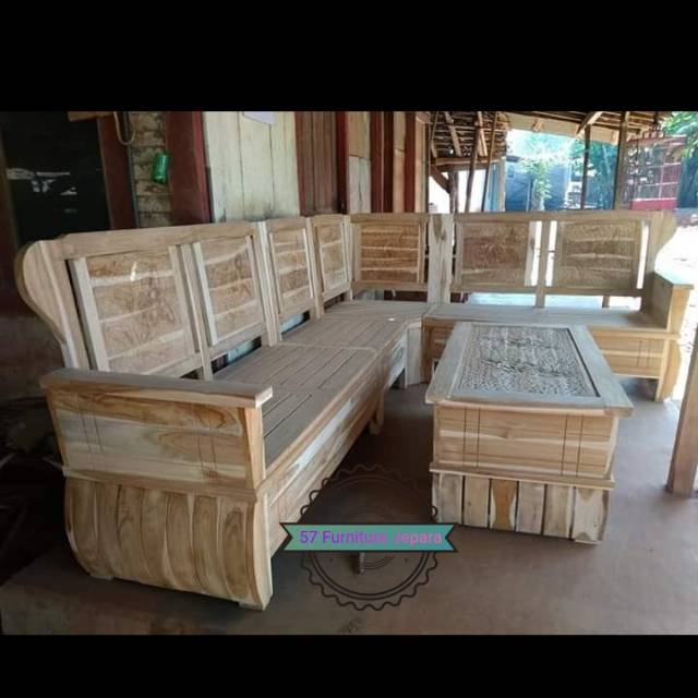 Kursi Sudut Ruang Tamu Model Besar Kayu Jati Jepara Shopee Indonesia