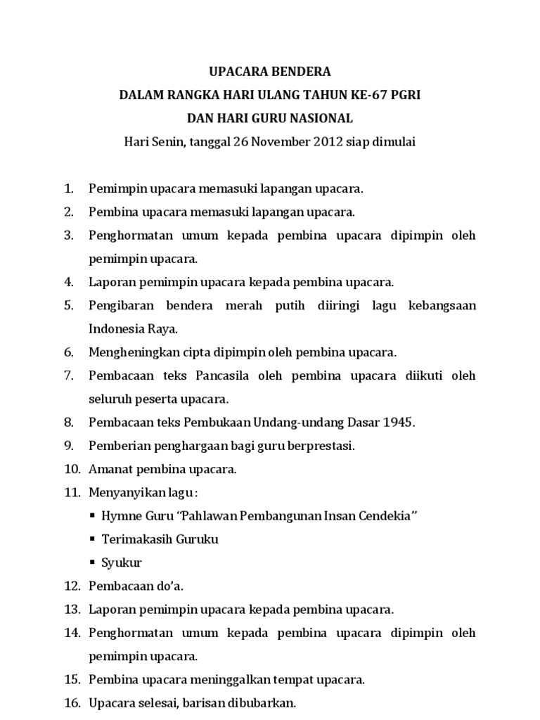 Teks Protokol Upacara Hut Pgri