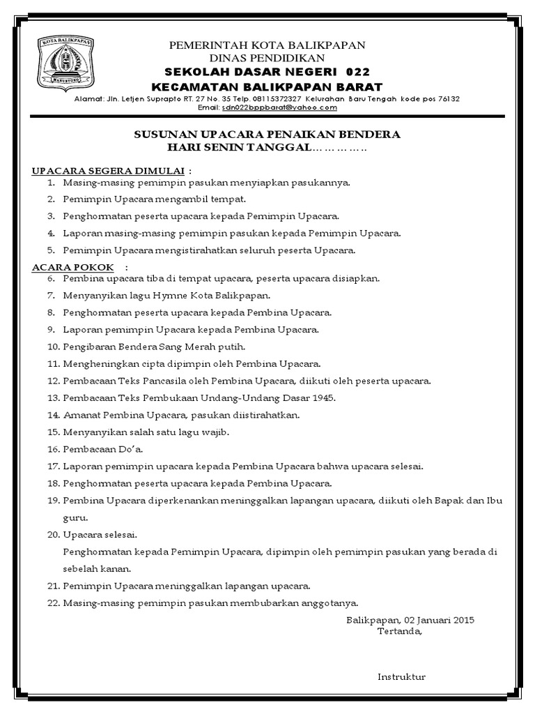 Contoh Susunan Upacara Bendera Senin Di Sekolah Berbagi Berbagai Cara