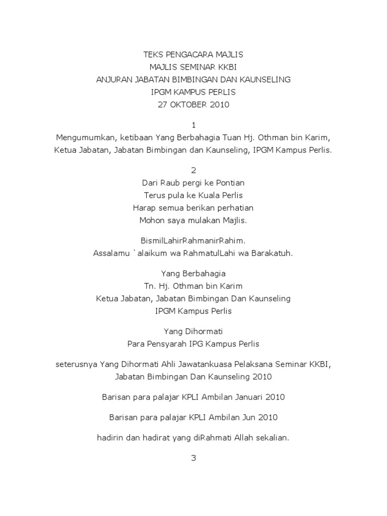 Teks Pengacara Majlis Seminar Kkbi 27 10 10