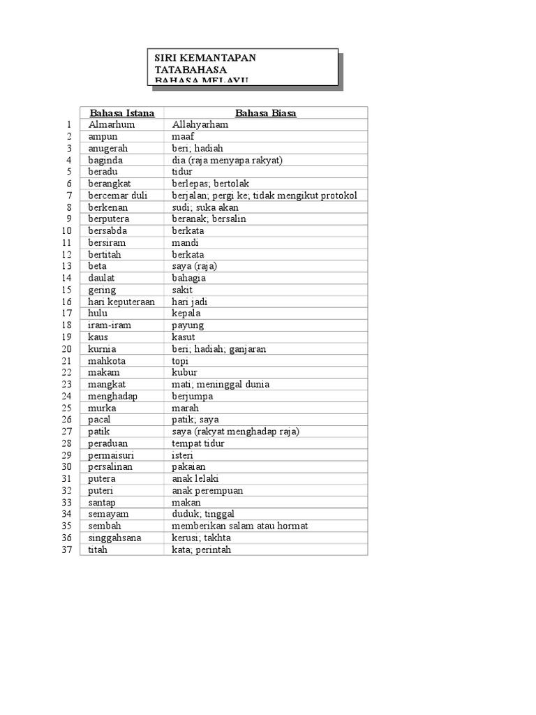 37 Perkataan Lazim Dari Bahasa Istana Newstyle