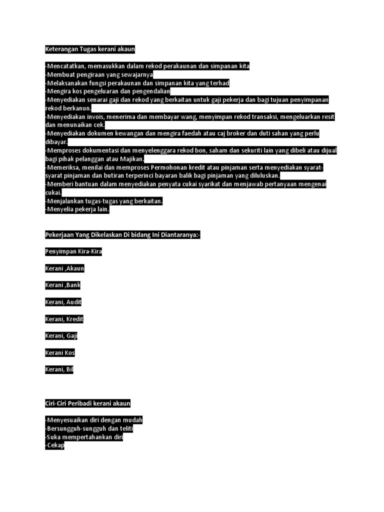 Keterangan Tugas Kerani Akaun