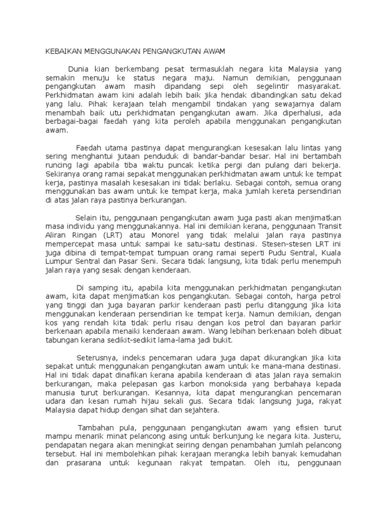 Karangan Spm Usaha Usaha Mengalakkan Penggunaan Pengangkutan Awam Docx