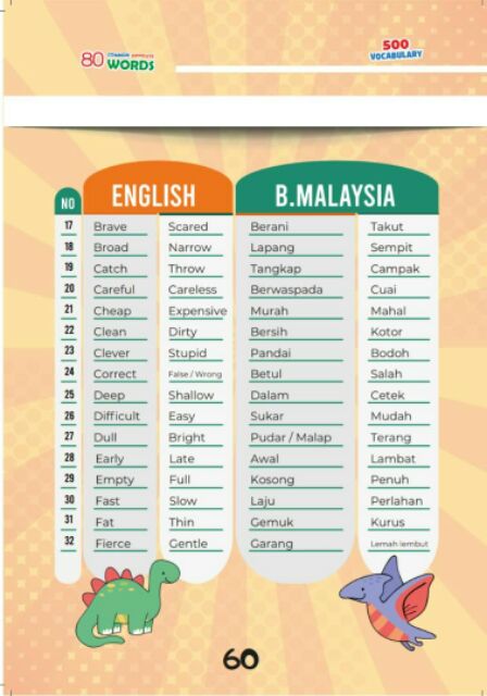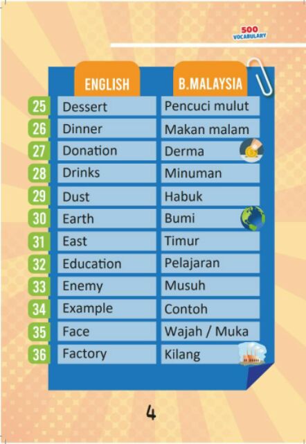 Buku 500 Vocabulary Words For Kids Belajar Bahasa Inggeris Dalam Bahasa Melayu Free Book Dictionary Shopee Malaysia